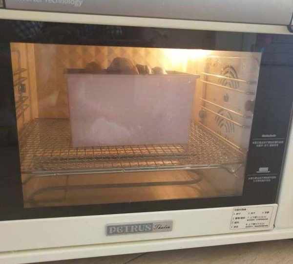 第12步、發酵到土司盒的9分滿,預熱烤箱。