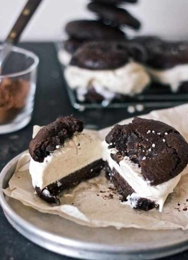 這夾著烏比派的冰淇淋,不忍直視,好想吃吖,軟軟的巧克力烏比派外皮,甜甜的香草冰淇淋內心,吃一口就滿足瞭!