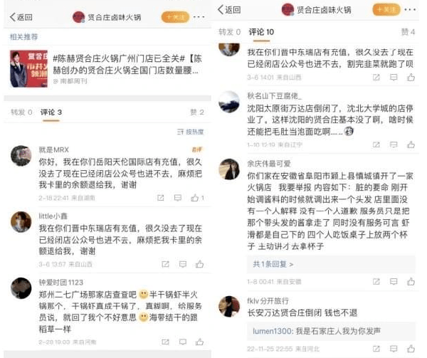當時,多位賢合莊加盟商因巨額虧損曾到賢合莊成都總部維權,創始人陳赫的退出也引起瞭輿論嘩然。“陳赫退出福建賢合莊股東”話題一度沖上微博熱搜。