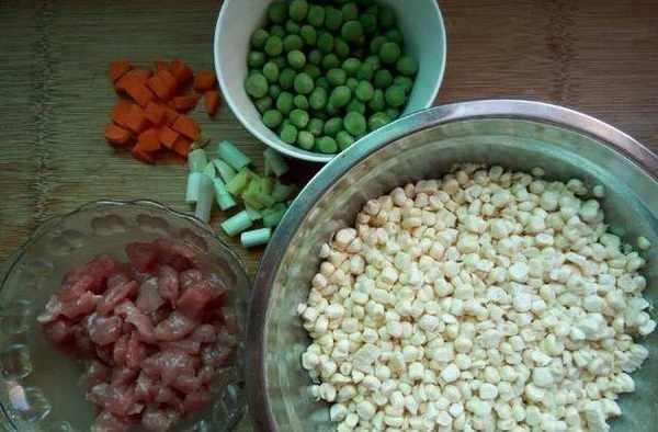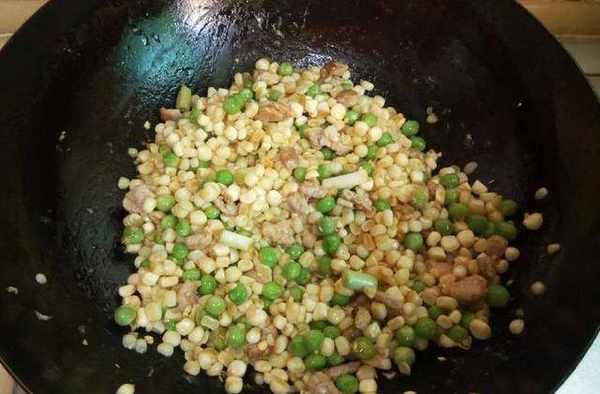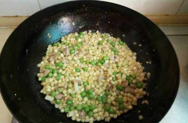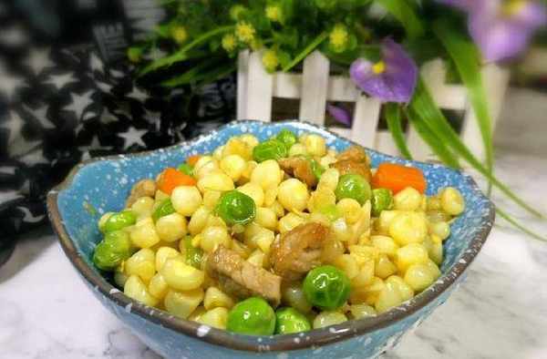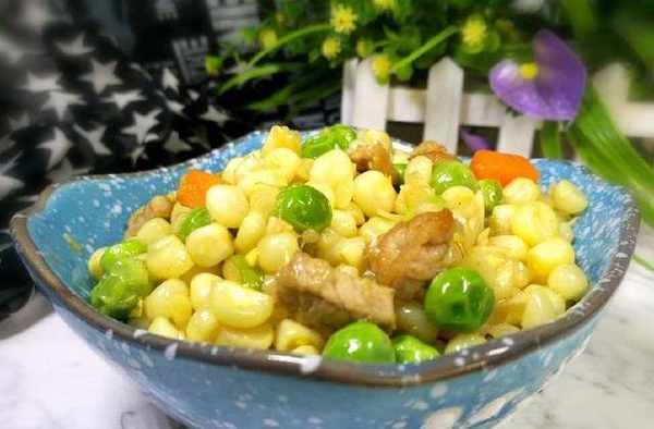 【玉米粒豌豆炒肉】