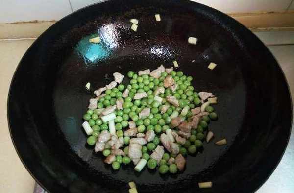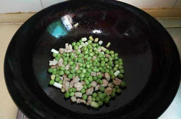 8、放入豌豆粒;