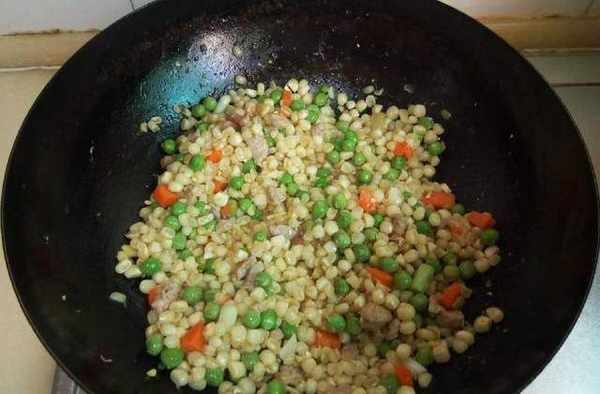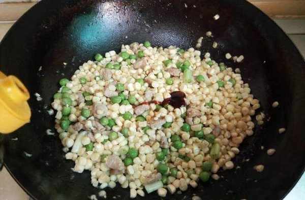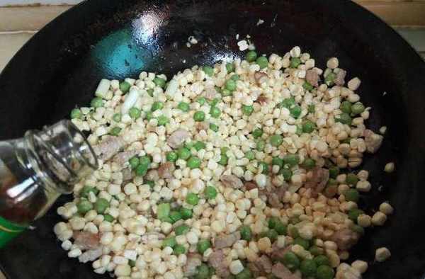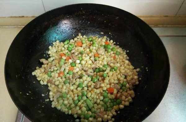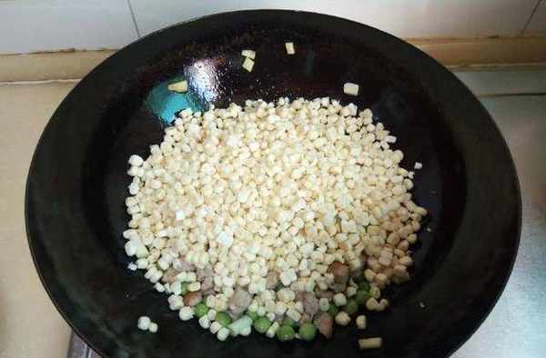 10、將玉米粒放入鍋中;