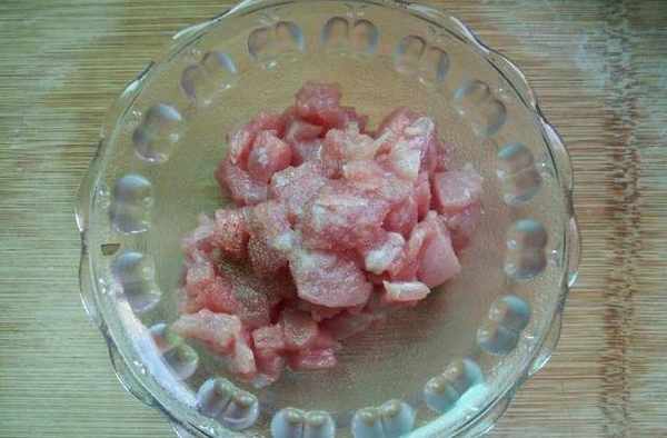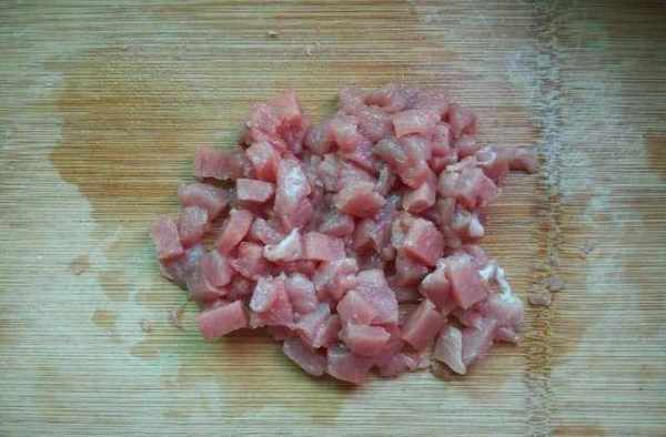 2、將豬肉切成小丁狀;
