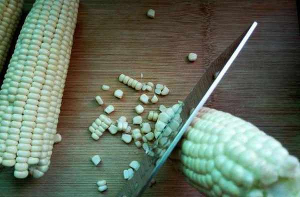 【步驟】1、將新鮮的嫩玉米從玉米棒上切下來;