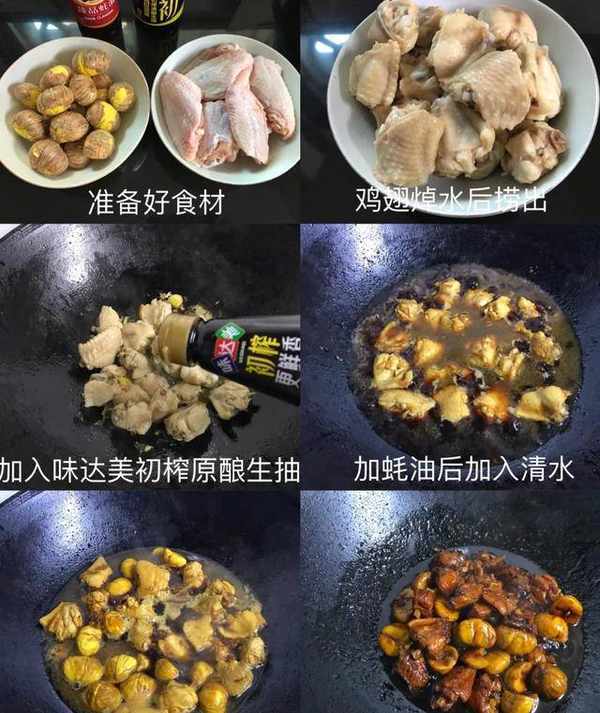 食材:板栗250克,雞翅8個;