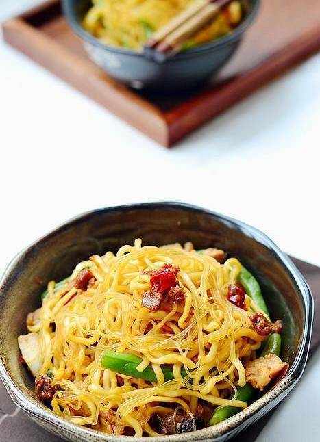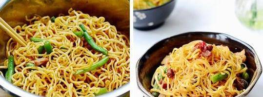 11:和蒸好的面條,配菜一起拌均勻即可。