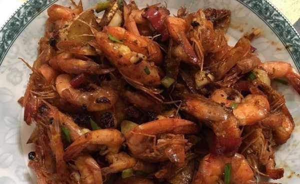 香辣開背蝦:首先將明蝦洗凈開背後加入適量的鹽、黃酒醃10分鐘;鍋內倒入適量的食用油,開中火;油溫到六成熱放入薑片、蒜頭片、辣椒絲、蔥白炒香,然後放入開背好的蝦翻炒熟,加入適量的醬油開始收汁;待將全部湯汁收完後,放入適量的麻油、花椒油、辣椒油、蔥花拌勻即可,這樣做出來的蝦更加入味哦。