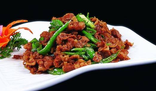 杭椒爆肥牛:這道菜色澤美觀、小菜清爽、牛肉鮮嫩、咸鮮微辣。牛肉選用牛柳或牛的後腿肉都可以,如用後腿肉最好把筋皮用刀片掉,否則會影響口感。此菜屬於旺火快炒菜肴,不需要勾芡,用旺火炒幹湯汁吃起來有燒烤的感覺。食材下鍋後切不可炒的過久,否則肉老瞭便不好吃瞭。能增進食欲幫助消化,令人胃口大開!