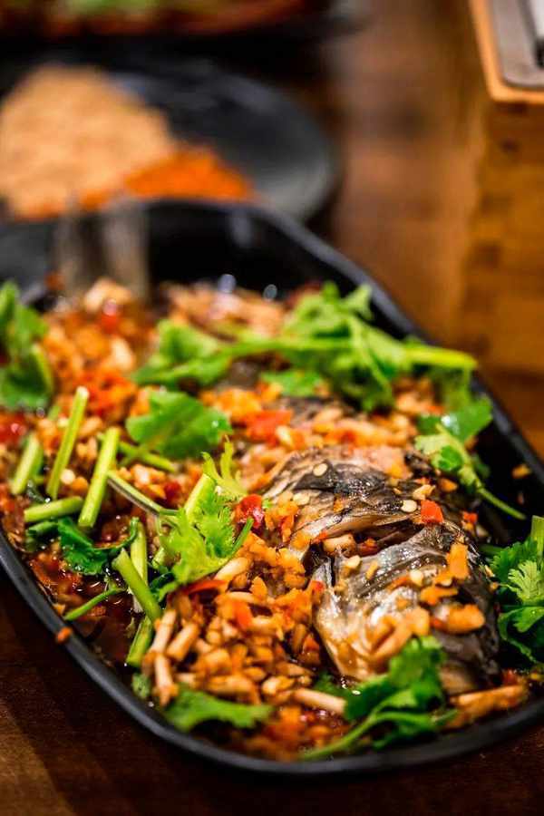 長江鯽魚是宜賓燒烤攤上的常客,鯽魚蒸熟後,澆上用蒜末、小米辣、薑、藤椒油、木薑籽油等調好的料汁,便成瞭涼拌鯽魚。涼拌鯽魚其實並不涼,蒸熟後的魚放到溫熱即可,這是川菜中“熱拌”的做法。