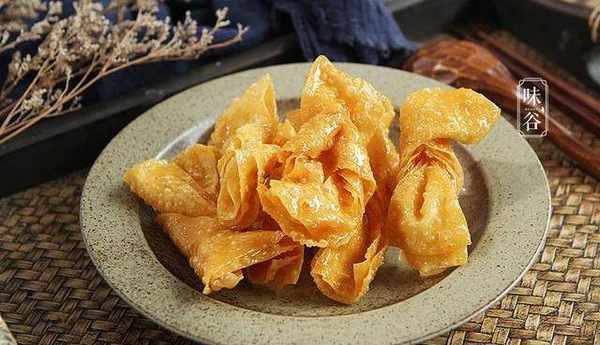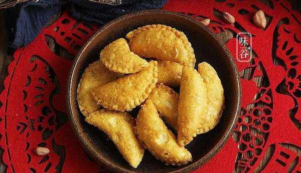 油角,油角在我傢鄉也叫酥角,皮酥有兩個角而得名,油角形狀像「荷包」,亦即錢包,裡為芝麻砂糖花生,取其錢包飽脹的好兆頭,象征來年傢肥屋潤。吃起來外脆酥內香甜,讓人滿口留香,越吃越上癮。