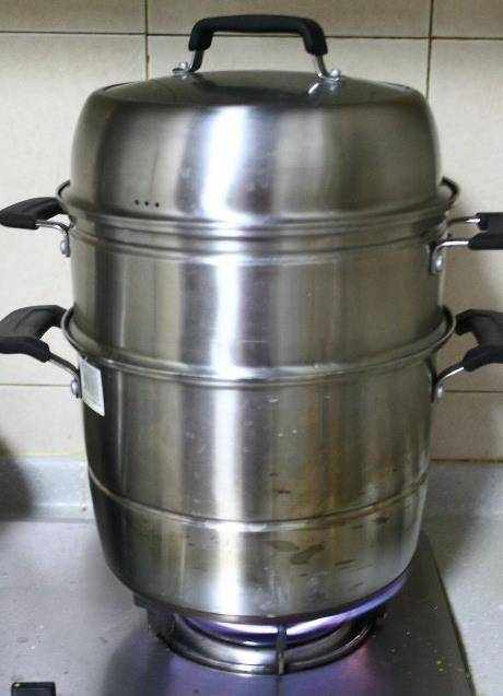 12、蒸鍋中加入適量的水,水燒開鍋後將盤子放入蒸鍋中大火蒸20分鐘左右關火,出鍋後撒少許香蔥