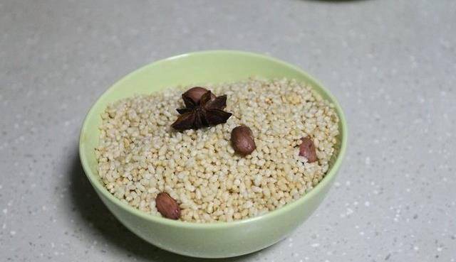 五花肉500g、大米150g、八角3顆、花生米10粒、白芝麻少許、薑幾片、料酒1勺、生抽1勺、花椒幾粒、香蔥少許