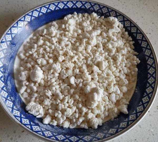 第4步、上面一層可先用筷子撥拉出來,剩下的幹面再噴點水再晃動盆,逛出小疙瘩。