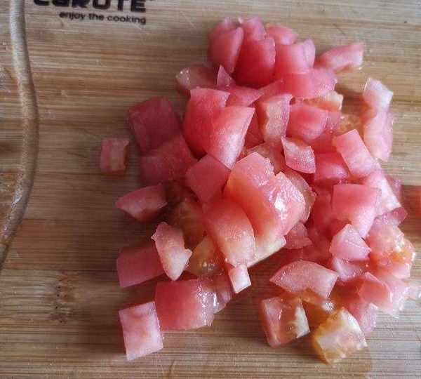 第5步、西紅柿去皮切小粒。