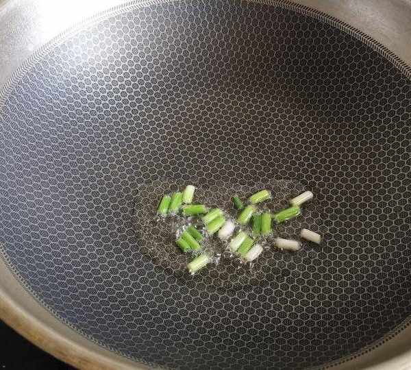 第6步、鍋中倒油,下入小蔥花炸香。
