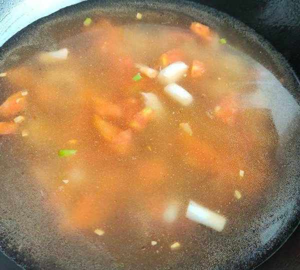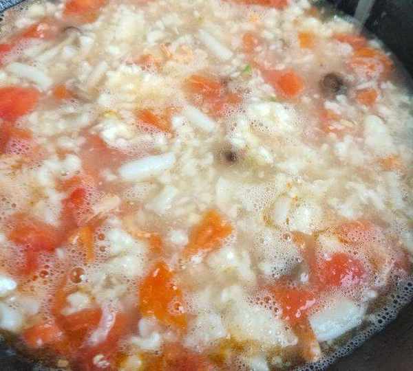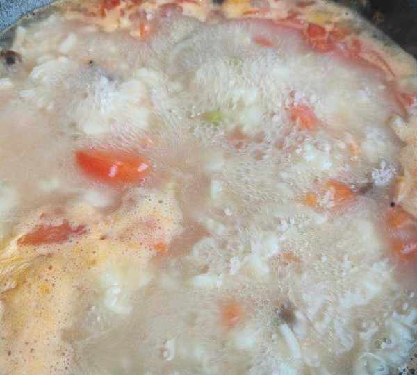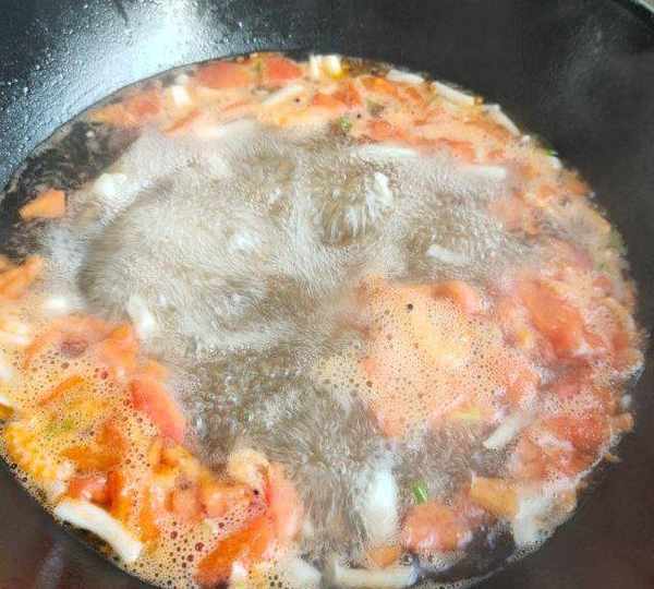 第13步、轉中火燒開,等面疙瘩九分熟↓↓↓。