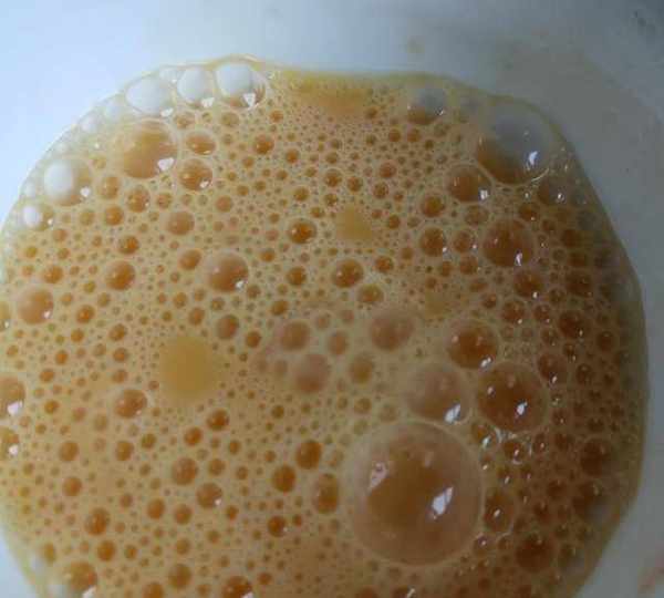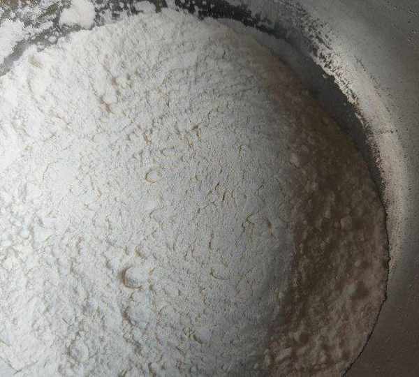 第9步、小盆內放入少許面粉,取一小碗放清水,分次少量加入面粉裡面,用筷子攪拌均勻,千萬不能一次把水倒進去,那樣就成坨瞭。