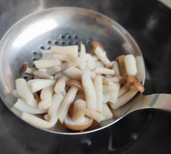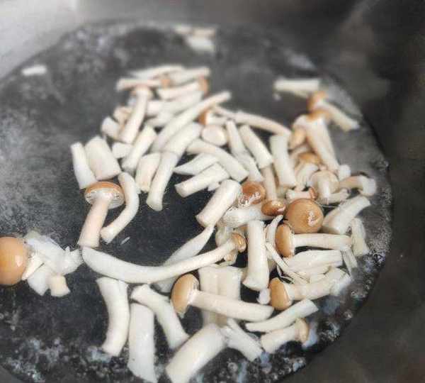 第4步、蟹味菇放入開水鍋裡面燙一下。