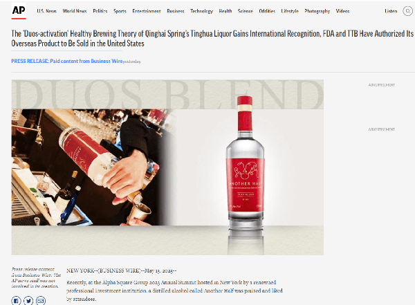 自面市以來便因“天價白酒”受到各界關註的聽花酒,又幹瞭件令業內不可小覷的大事。據美聯社等數百傢外媒近日報道,高端商務白酒“聽花酒”的海外產品Another Half (另一半),近期獲得美國食品藥品監督管理局(FDA)和美國酒類及煙草稅務貿易局(TTB)批準在美國上市;同時,美國 TTB還對產品工藝與特點表述進行瞭核準,允許“Duos blend(雙重調和)”作為Another Half 的 distinctive name(獨具特色的產品名稱)標識於產品標簽上。