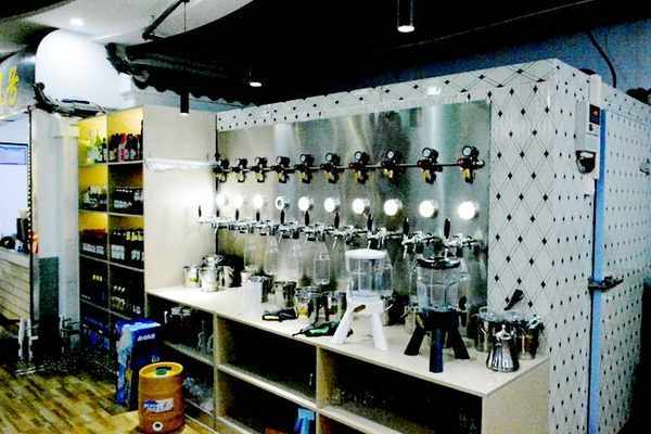 進入大門,石階而下,眼前頓時一亮。寬敞明亮的大廳;幹凈衛生的可視操作間;五彩繽紛的燈光;九龍、旺角、銅鑼灣、尖沙咀……別具一格的卡座、單間、VIP包房,不禁讓人有瞭一種從紅色革命老區穿越到豪華都市香港的感覺;各種水果口味的鮮釀啤酒,別有風味;在滿滿回憶的電視遊戲機裡玩上一把街頭拳皇,頓時讓你回到上個世紀;就連辦公收銀臺也裝修成瞭“追風號”高鐵的模樣,載著蘭山、羅莊、河東奔向未來……