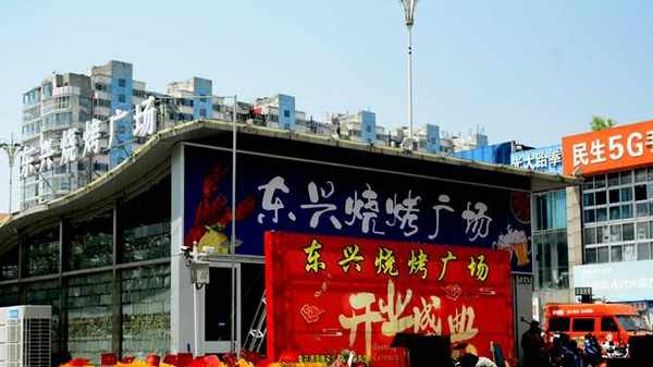 信息聯播山東訊(張春兄 馮愛雲) 淄博燒烤八大局,臨沂燒烤到東興。5月15日11時12分,臨沂市河東區東興路與解放路交匯處有全大廈東側鞭炮齊鳴,熱鬧非凡!東興燒烤廣場正式開烤啦!