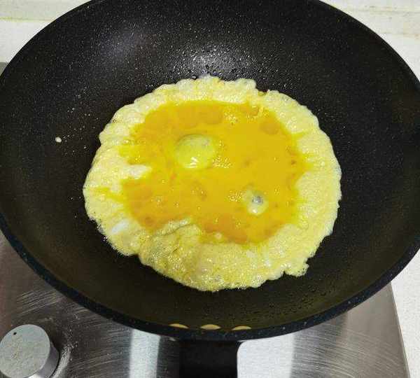 第5步、鍋中燒油,雞蛋炒散撈出。