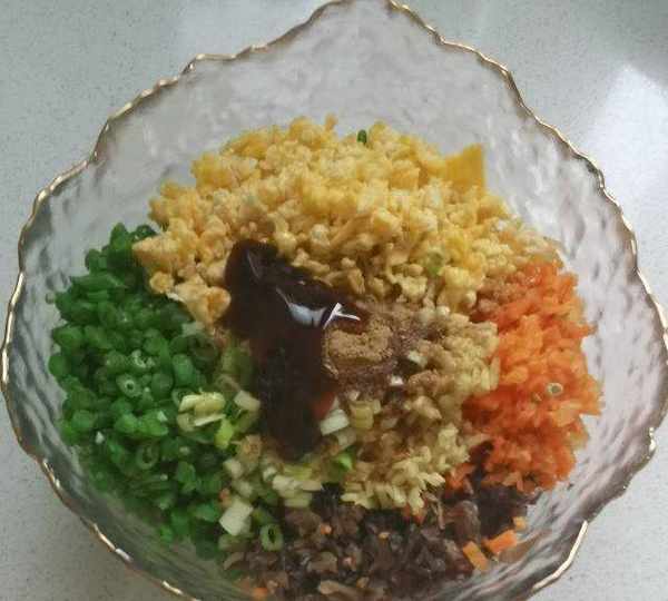 原料:豇豆、胡蘿卜、木耳、雞蛋、小蔥、生薑、大蒜、鹽、生抽、料酒、辣椒粉、雞精、蠔油、芝麻油、十三香、胡椒粉、白糖、醋、熟芝麻。