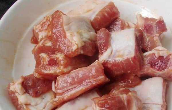 1、首先我們從市場上購買新鮮的排骨,買回傢之後將排骨在清水當中浸泡一會兒,這樣可以使肉質更加松軟,做出來的肉更加入味一些,然後將排骨清洗幹凈之後撈出控幹水分放進大碗當中。