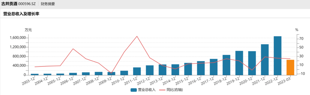下面繼續說古井貢酒的業績,先看歷史增速: