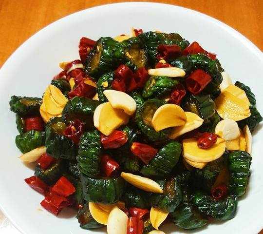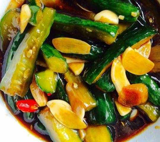 5、鍋裡加油,放入花椒大料炸出香味,然後晾涼倒在醃制的黃瓜上面,放到陰涼處醃制3天以上即可食用。