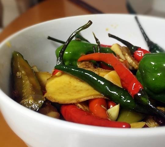 2、將辣椒,蒜,薑都切一下,別切太小,如果本身就小的話不切也行,免得醃制完後撈不出來;