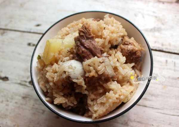 所用資料:大米3杯,排骨500克,洋芋2個,鹽少許,孜然少許,醬油1勺,花生油適量。