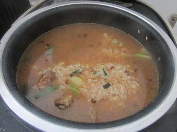 第七步:直接倒入電鍋中,選擇煲仔飯鍵,時間到了就自動停止。用電鍋還有一個好處就是保溫功能,做,可以一直保溫,回家就可以直接上桌。電鍋還可以預約,都準備好以後,預約時間,也很方便的。
