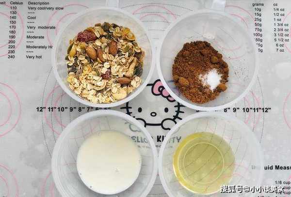 首先,準備所有必要的材料並稱重。燕麥可以用水果燕麥,裡面有一些幹果。這樣做出來的餅幹更有營養。如果傢裡隻有純麥片的話,這個就沒有限制瞭。畢竟,有些人可能喜歡純燕麥片。
