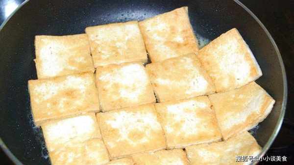 煎豆腐時,要控制好豆腐的厚薄。如果豆腐太薄,很容易燒焦。豆腐切得太厚,口感會不好,不容易炸熟,所以要控制。豆腐的厚度合適。