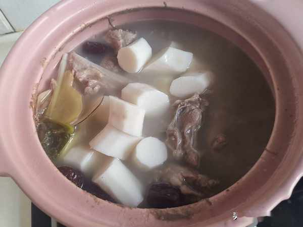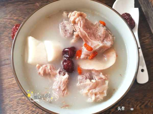 所用食材:羊骨頭,山藥根,枸杞少許,鹽少許,葱段,薑片,料酒,海底椰。
