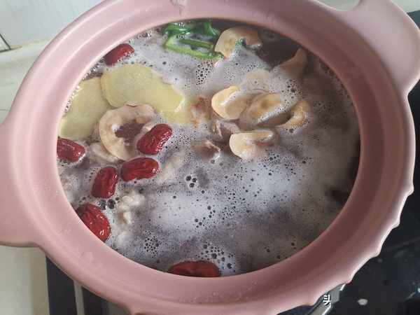 第三步:然後加入葱,薑,海底椰,紅棗大火煮開。