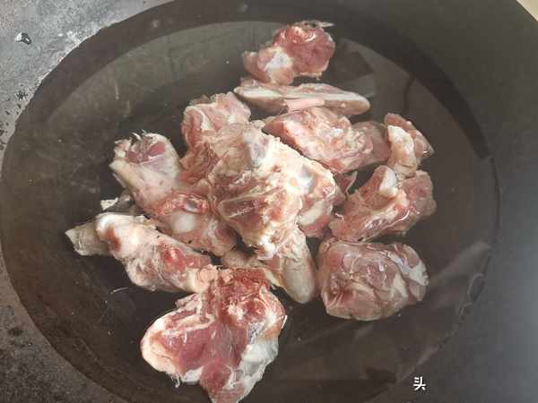 第二步:砂鍋中放入清水,把焯水的羊骨頭放入砂鍋中。