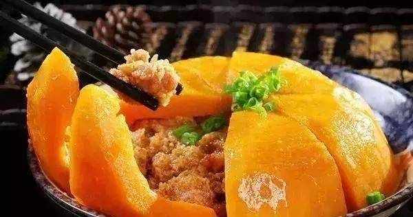 4.將南瓜蓋上蓋子,放入蒸鍋中再蒸20分鐘至南瓜完全熟透。上菜前,揭開南瓜的蓋子,在上面倒幾滴鮮味汁。