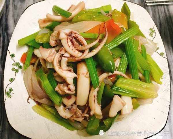 1 將魷魚切十字花刀,放入開水中氽燙,成卷撈出,切一厘米長的小卷,備用。