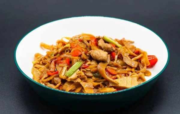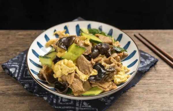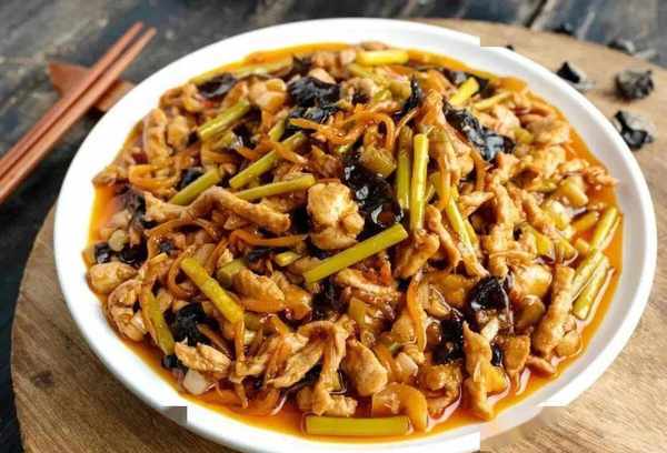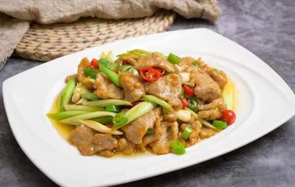 選肋條或後腿肉,切成不超過一分厚的肉片,放在碗裡加少許醬油、料酒、淀粉、蛋,攪拌均勻備用。油燒熱,放入拌好的肉片,用勺輕輕來回撥動,直到肉片伸展,再加配料蔬菜木耳之類,炒一會即成。