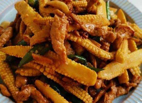 鍋裡倒入適量的油,等油溫高瞭,把蒜和薑放入鍋裡,等香味出來後,把肉絲倒入鍋裡,炸好後,放入玉米芽放入其中,用高溫快速翻炒2分鐘,加入鹽和雞精翻炒至食材入味,即可出鍋。小玉米味道鮮美,對身體有益。喜歡吃的也可以多吃。