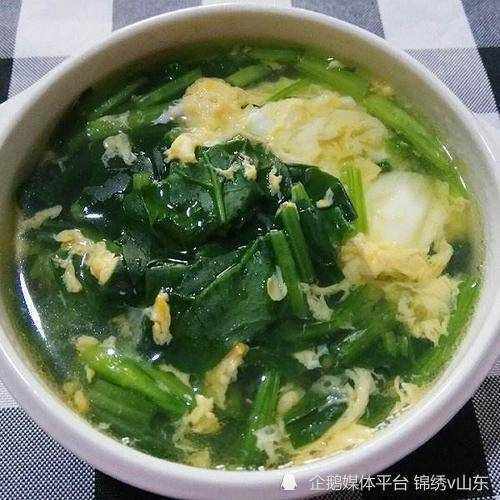 2. 菠菜雞蛋湯: 菠菜是一種營養豐富的蔬菜,富含鐵、鈣、胡蘿卜素等。同時,雞蛋含有豐富的蛋白質和B族維生素。菠菜和雞蛋放在一起,既能提高人體的血紅蛋白含量,還能促進人體的代謝功能,舒緩腰痛。