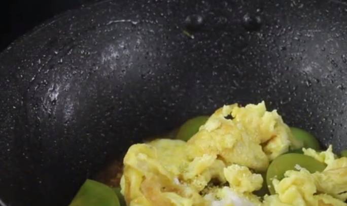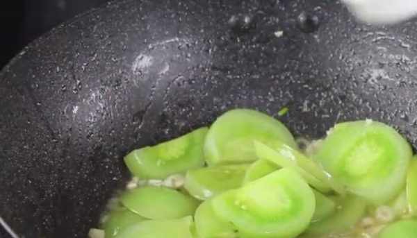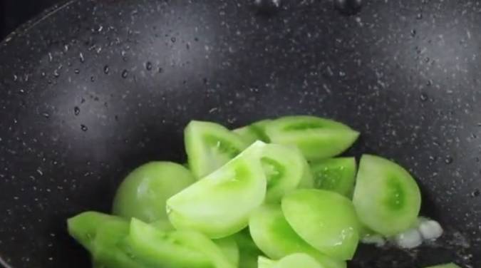 接著鍋裡面倒入適量的油,把切好的青的西紅柿倒在鍋裡面翻炒,炒香後把事先準備好的雞蛋,倒在裡面翻炒,然後在裡面放上適量的鹽,其實青的西紅柿和熟的西紅柿做法差不多,但是沒熟的西紅柿炒的時候裡面的汁水並不是很多。