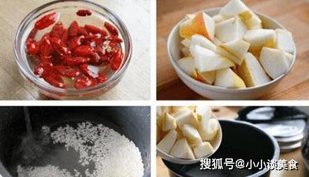 美食食材:梨兩個,枸杞一小把,糯米和小米一兩根