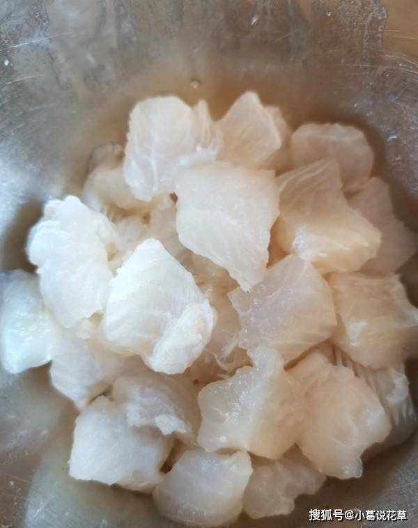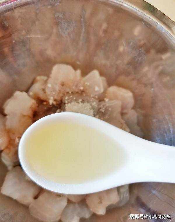 2.魚加入鹽、胡椒粉、糖、料酒、淀粉、生抽、1湯匙油拌勻,醃10分鐘