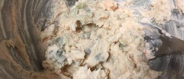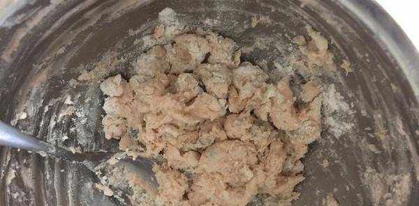 4.篩入低筋面粉和糯米粉,拌勻,一點一點加入面粉,基本成型。