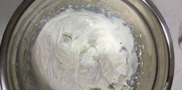 1.加入淡奶油和糖,打成9份。
