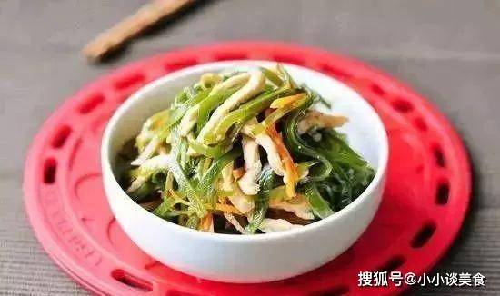 1、海帶泡發,洗凈,切成細絲。胡蘿步被打斷。將雞胸肉切成塊。大蒜被壓成泥。