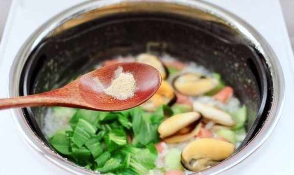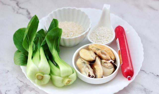 大米50克,糯米20克,蚌肉150克,火腿腸1條,大白菜2片,胡椒粉1克,料酒3克,精鹽適量